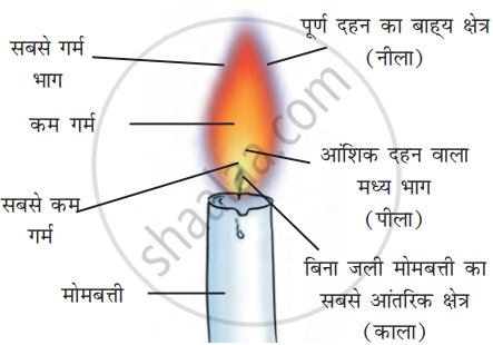 मोमबत्ती की ज्वाला का चिह्नित चित्र बनाइए।