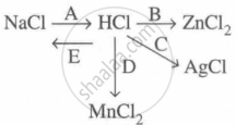 Study the flow chart and give balanced equations with conditions for the conversions A, B, C, D and E.