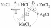 Study the flow chart and give balanced equations with conditions for the conversions A, B, C, D and E.