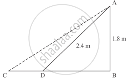 Nazima is fly fishing in a stream. The tip of her fishing rod is 1.8 m above the surface of the water and the fly at the end of the string rests on the water 3.6 m away and 2.4 m from a point directly under the tip of the road. Assuming that her string (from the tip of her road to the fly) is taut, how much string does she have out (in the given figure)? If she pulls the string at the rate of 5 cm per second, what will the horizontal distance of the fly from her after 12 seconds.