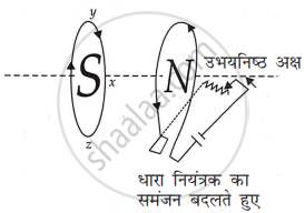 नीचे दिए गए चित्र में वर्णित स्थिति के लिए प्रेरित धारा की दिशा की प्रागुक्ति कीजिए। उभयनिष्ठ अक्ष, धारा नियंत्रक का समंजन बदलते हुए - Physics (भौतिक विज्ञान)