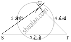 ∆ STU में, `l`(ST) = 7 सेमी, `l`(TU) = 4 सेमी, `l`(SU) = 5 सेमी।