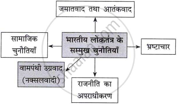 निम्न संकल्पना चित्र पूर्ण कीजिए: भारतीय लोकतंत्र के सम्मुख चुनौतियाँ वामपंथी उग्रवाद (नक्सलवादी) - History and Political Science [इतिहास और राजनीति विज्ञान]