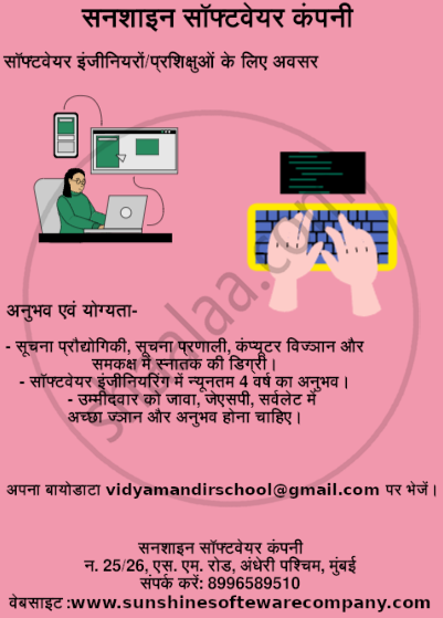 | शैक्षिक अर्हता | अनुभव | व्यावसायिक अर्हता | वेतन | संपर्क: महात्मा हिंदी विद्यालय, पुणे। मो. नं. 2332422409 |