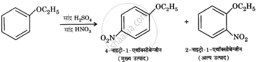 इलेक्ट्रॉनरागी प्रतिस्थापन में, ऐल्कॉक्सी समूह ऐरोमैटिक वलय को सक्रिय बनाता है तथा प्रवेश करने वाले समूह को o- तथा p-स्थितियों की ओर निर्दिष्ट करता है। इसलिए एथॉक्सीबेन्जीन का नाइट्रीकरण 2- तथा 4-नाइट्रोएथॉक्सीबेन्जीन का मिश्रण देता है जिसमें 4-नाइट्रोएथॉक्सीबेन्जीन 2- स्थिति पर त्रिविमीय बाधा के कारण मुख्य उत्पाद होता है।