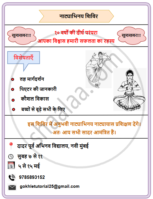 निम्नलिखित जानकारी के आधार पर विज्ञापन तैयार कीजिए :