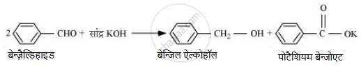 \ce{2\phantom{...}C = O + {सांद्र} KOH -> H - C - OH + C - OK}\\