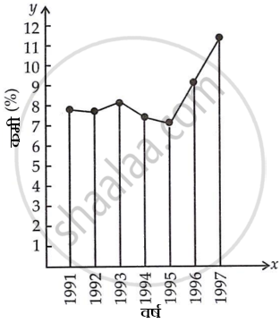 निम्नलिखित सारणी में 1991 से 1997 तक भारत में विद्युत् की कुल कमी को दिखाया गया है। इन आँकड़ों को ग्राफ द्वारा आलेखित करिए। वर्ष में कमी प्रतिशतता को Y-अक्ष पर तथा वर्ष X-अक्ष पर आलेखित करिए।