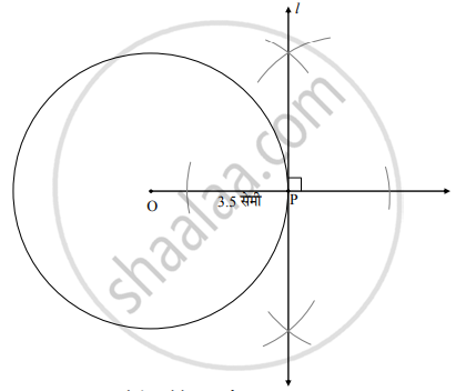 O केंद्र व त्रिज्या 3.5 सेमी असलेल्या वर्तुळाला त्यावरील P बिंदूतून स्पर्शिका काढा.