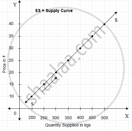 The above diagram shows an upward sloping supply curve, indicating that supply increases with increase in price (Law of Supply).