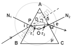 Obtain the relation A + δ = i + e for a prism where A is the angle of the prism, δ is the angle of deviation, i is the angle of incidence and e is the angle of emergence. Write this relation for the minimum deviation?
