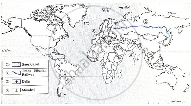 On an outline map of the world, show the following with the help of suitable index: