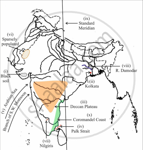 On the outline map of India provided: