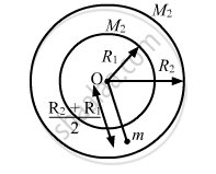 ∴ Gravitational force due to the shell of mass M2 = \[\frac{G M_1 m}{\left( \frac{R_1 + R_2}{2} \right)^2} = \frac{4G M_1 m}{\left( R_1 + R_2 \right)^2}\]