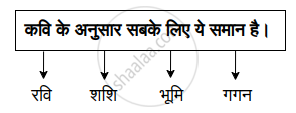 पद्यांश पढ़कर दी गई सूचनाओं के अनुसार कृतियाँ कीजिए। सबका समान रवि है, शशि है, सबका समान है मुक्त पवन; 1. संजाल आकृति पूर्ण कीजिए: - Hindi - Composite [हिंदी - संयुक्त]