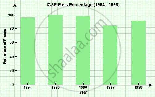 Here is the bar graph representing the ICSE pass percentages for the years 1994 to 1998. It clearly shows the highest pass rate in 1995 (100%) and the lowest in 1997 (85%).