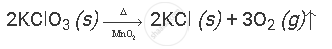 Potassium chlorate (KClO3) on heating forms potassium chloride and oxygen. Write a balanced equation for this reaction and indicate the evolution of gas.