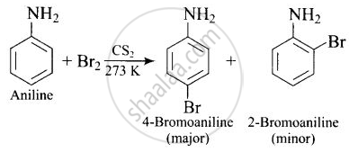 Predict the product of reaction of aniline with bromine in non-polar solvent such as \[\ce{CS2}\].