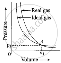 Pressure versus volume graph for a real gas and an ideal gas are shown in figure. Answer the following questions on the basis of this graph.