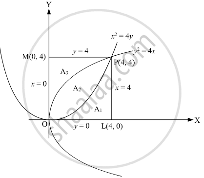 Prove that the curves y2 = 4x and x2 = 4y divide the area of square bounded by x = 0, x = 4, y = 4 and y = 0 into three equal parts.