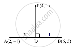 Let PD be the perpendicular drawn from P (4, 1) on the line joining the points \[A\left( 2, - 1 \right) \text { and } B\left( 6, 5 \right)\].