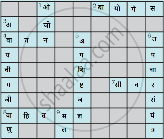 प्रस्तुत वर्ग पहेली को दिए गए संकेतों की सहायता से हल कीजिए। संकेत बाएँ से दाएँ 2. वाहित मल उपचार संयंत्र से प्राप्त गैसीय उत्पाद 4. इस प्रक्रम में प्रदूषित जल से बायु को गुजारा जाता है। - Science (विज्ञान)
