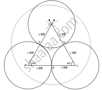 ∴ `{:("A" - "P" - "B"), ("A" - "Q" - "C"), ("B" - "R" - "C"):}}` .......[स्पर्शवर्तुळांचे प्रमेय]
