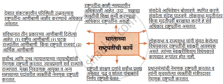 पुढील संकल्पनाचित्र पर्ण करा. भारताच्या राष्ट्रपतींची कार्य - History and Civics [इतिहास व नागरिकशास्त्र]