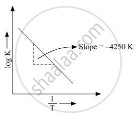 Where Ea is the activation energy. When a graph is plotted for `logk Vs. 1/T` a straight line with a slope of −4250 K is obtained. Calculate ‘Ea’ for the reaction.(R = 8.314 JK−1 mol−1)