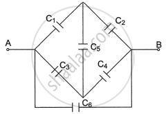 - Find the equivalent capacitance between points A and B in the given diagram.