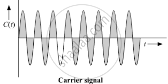 Show graphically an audio signal, a carrier wave and an amplitude modulated wave