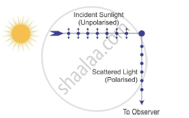 Show with the help of a diagram, how unpolarised light from Sun gets linearly polarised by scattering.