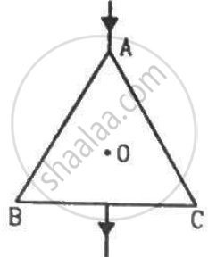 The wire ABC shown in figure forms an equilateral triangle. Find the magnetic field B at the centre O of the triangle assuming the wire to be uniform.