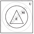 समुच्चय E, M और U के बीच निम्नलिखित संबंध को स्पष्ट करने वाले वेन आरेख खींचिए, जहाँ E, किसी विद्यालय में अंग्रेजी पढ़ने वाले विद्यार्थियों का समुच्चय है, M इसी विद्यालय में गणित पढ़ने वाले विद्यार्थियों का समुच्चय है तथा U उस विद्यालय में पढ़ने वाले समस्त विद्यार्थियों का समुच्चय है।
