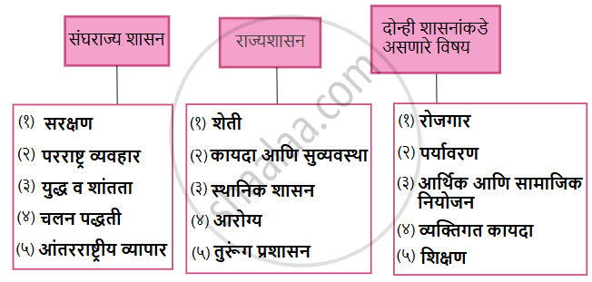 संघराज्य शासनपद्धतीनुरूप अधिकारांची विभागणी कशाप्रकारे केली आहे याची सूची खालील तक्त्यात तयार करा. - History and Civics [इतिहास व नागरिकशास्त्र]