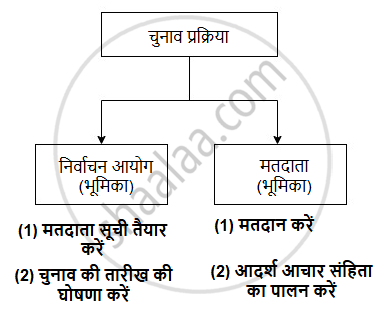 संकल्पना चित्र पूर्ण कीजिए: चुनाव प्रक्रिया, निर्वाचन आयोग, (भूमिका), मतदाता (भूमिका) - History and Political Science [इतिहास और राजनीति विज्ञान]
