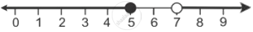Graph of solution set of x > 7 or x ≤ 5 = Graph of points which belong to x > 7 or x ≤ 5 or both.