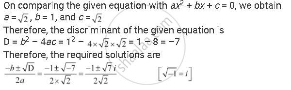 The given quadratic equation is `sqrt2x^2 + x + sqrt2 = 0`