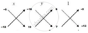 ∴ `x/([(−5)×10 −(−16) ×(−13)]) = y/([(−16)×7 −10 × 6]) = 1/([6 ×(−13)−(−5) × 7])`