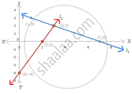 Plotting points (7, 0), (3, 2), (1, 3) and joining them, we get a line l1 which is the graph of equation (1).