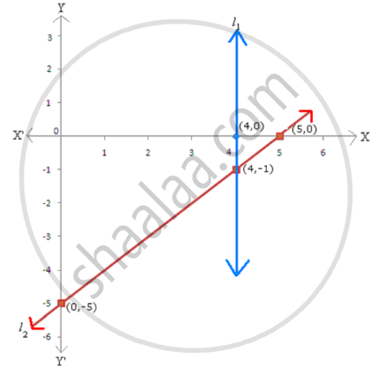 Plotting points (4, -1), (0, -5), (5, 0) and joining them, we get a line l2 which is the graph of equation (2).