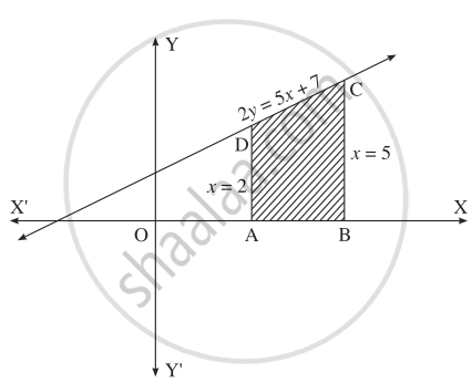 Find the area of the region bounded by the straight line 2y = 5x + 7, X-axis and x = 2, x = 5.
