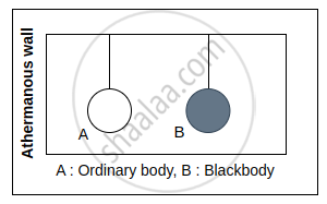 Kirchhoff’s law can be theoretically proved by the following thought experiment. Consider an ordinary body A and a perfect blackbody B of identical geometric shapes placed in an enclosure. In thermal equilibrium, both bodies will be at same temperature as that of the enclosure.