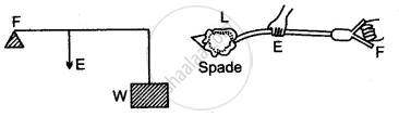 In the diagram shown alongside a claw hammer, mark the fulcrum (F) and indicate the directions of load (L) and effort (E) with arrows. What class of lever is it? Give one more example of this class of lever.