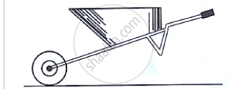 The diagram below shows a wheel barrow. Mark position of fulcrum F and draw arrows to show the directions of load L and effort E. What class of lever is the whell barrow? Give one more example of the same class of lever.