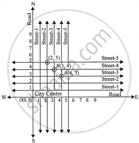 - Point A(4, 3) shows a unique cross street.