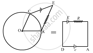 Suppose the circular loop lies in a vertical plane. The rod has a mass m. The rod and the loop have negligible resistances but the wire connecting O and C has a resistance R. The rod is made to rotate with a uniform angular velocity ω in the clockwise direction by applying a force at the midpoint of OA in a direction perpendicular to it. A battery of emf ε and a variable resistance R are connected between O and C. Neglect the resistance of the connecting wires. Let θ be the angle made by the rod from the horizontal position (show in the figure), measured in the clockwise direction. During the part of the motion 0 < θ < π/4 the only forces acting on the rod are gravity and the forces exerted by the magnetic field and the pivot. However, during the part of the motion, the resistance R is varied in such a way that the rod continues to rotate with a constant angular velocity ω. Find the value of R in terms of the given quantities.