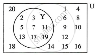 Take the set of natural numbers from 1 to 20 as universal set and show set Y using Venn diagram.