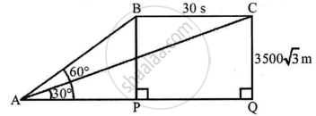 The angle of elevation of an aircraft from a point A on the ground is 60°. After a flight of 30 seconds, the angle of elevation changes to 30°. The aircraft is flying at a constant height of 3500`sqrt3` m at a uniform speed. Find the speed of the aircraft.