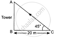 The angle of elevation of the top of a tower from a point 20 meters away from its base is 45°. The height of the tower is 20 m.